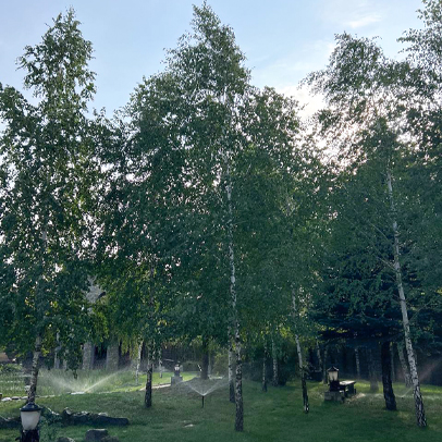 Перед замком, в стороне от пруда находится березовая роща. Это прекрасное место для прогулок и отдыха сидя на удобных скамейках.
